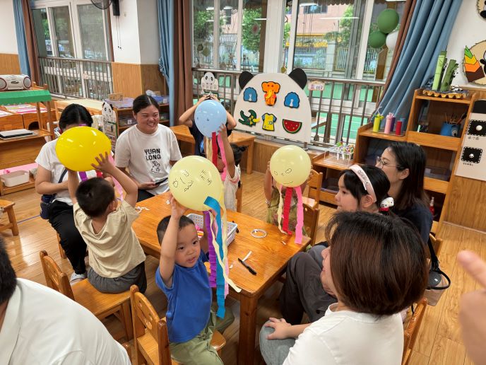 签到?留印初光环节,稚嫩的小脸带着期待与新奇的眼神,在家长的陪同下,孩子们在签到墙 “种” 下一颗名为 “成长” 的种子;早操?小苗晨动时,欢快的旋律中,孩子们化身跃动的小精灵,伸展、扭动、跳跃,在晨光里舒展身心;教学?童心初探中,小一班《小鱼快跑》,欢乐的音乐声中,孩子们化作一条条小鱼,跟随节奏快慢变化游动,在音乐的海洋中快乐畅游;小二班《可爱的气球章鱼》,亲子协作的时光里,家长和孩子齐动手,撕一撕、粘一粘、画一画,一个个可爱的气球章鱼,让稚嫩的笑脸更加明媚可爱;小三班《鳄鱼和小猴子》,在节奏的魔法里,孩子们与音乐相遇,跟着音乐舞动,感受音律之美,童年就是这么的快乐呀!水果?甜润初尝环节,孩子们在老师引导下洗手、取餐,品尝着美味水果,补充身体能量。生活技能启蒙从细节开始,甜蜜滋味藏进成长记忆。