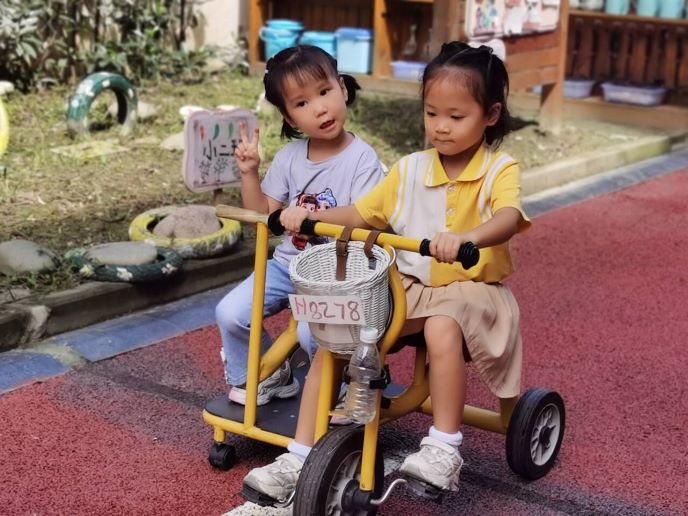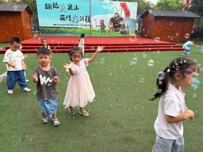 五彩泡泡载着孩子们的欢笑随风飘荡,将欢乐带向远方的“泡泡日”;分享、交换间藏着大大社交智慧,在“你教我玩”的瞬间让纯真友谊悄然萌芽的“玩具日”;听一段好听的故事,跟随趣味情节走进童话世界的“绘本日”,一个个精心设计的主题活动,为萌娃们搭建起适应新环境的温馨桥梁。“大手牵小手”主题日更是将活动氛围推向高潮,当“大宝贝”遇上“小萌新”,爱的陪伴让有趣的事情接连上演。快乐骑行时的迎风欢笑,圈圈乐游戏里的默契配合,趣味手工中的专注创作,游戏相伴间欢乐满溢,原本带着些许胆怯的小萌新们悄然转变。从入园时的“不想来”到放学后的“爱上幼儿园”,孩子们用稚嫩的脚步丈量着成长的距离,每一个小小的进步都藏着温暖与力量。