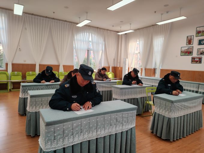 保育组立足真实教育场景,以细节润童心、专业护成长,保育老师们通过生动PPT展示,从幼儿正确洗手、自主进餐到值日生任务管理,细致还原“问题发现—应对策略—反思优化”全过程,尽显以幼儿为本的专业智慧;早操保教配合考核中,评委围绕赛前准备、赛中陪伴与赛后照护,全面检阅保育员对幼儿身心状态的关注及应急响应能力。安保与消控组则以火眼识隐患、铁肩筑平安,接受“视频找隐患 + 现场笔试”双重考验,限时排查消防器材缺失、应急通道堵塞等隐蔽风险,笔试紧扣园所实际涵盖消防法规与应急处置流程,淬炼出专业过硬的安全铁军。
