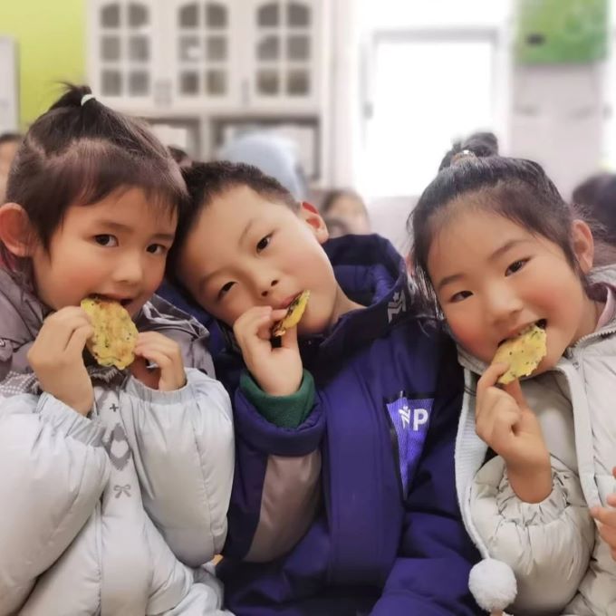 翠绿的春菜、金黄的蛋液、香软的面粉......,在孩子们的巧手制作下,一张张春饼新鲜出炉。袅袅炊烟,香气四溢,他们围坐一起,品尝自制的春日美味,把独属于春天的味道留在了唇齿间。